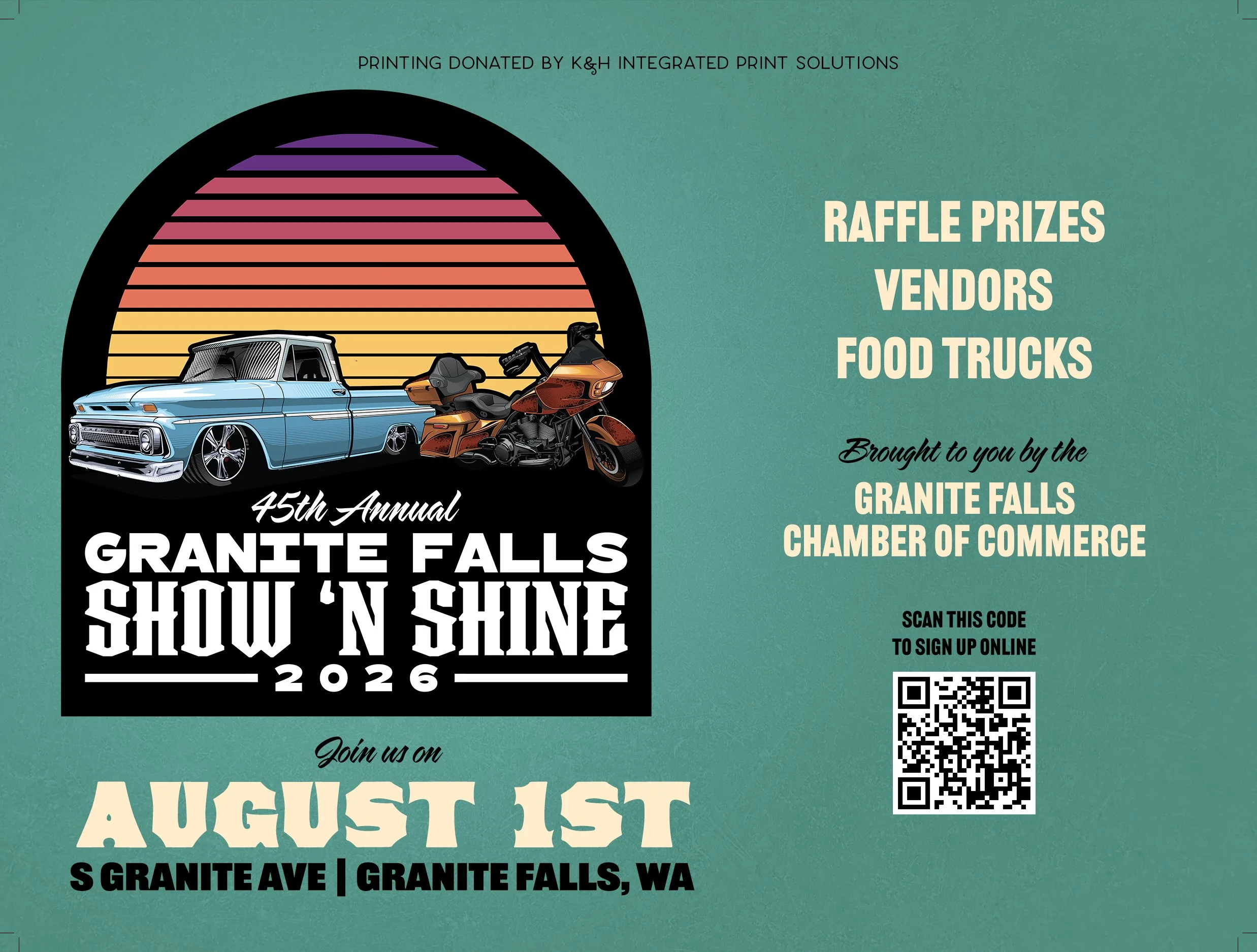 - Once you are parked in your spot, all owners must come to the registration tent in front of the police station to check in and pick up your registration card. At this time you will have the opportunity to purchase t-shirts and raffle tickets. Payment can be made by cash or card only, no checks.